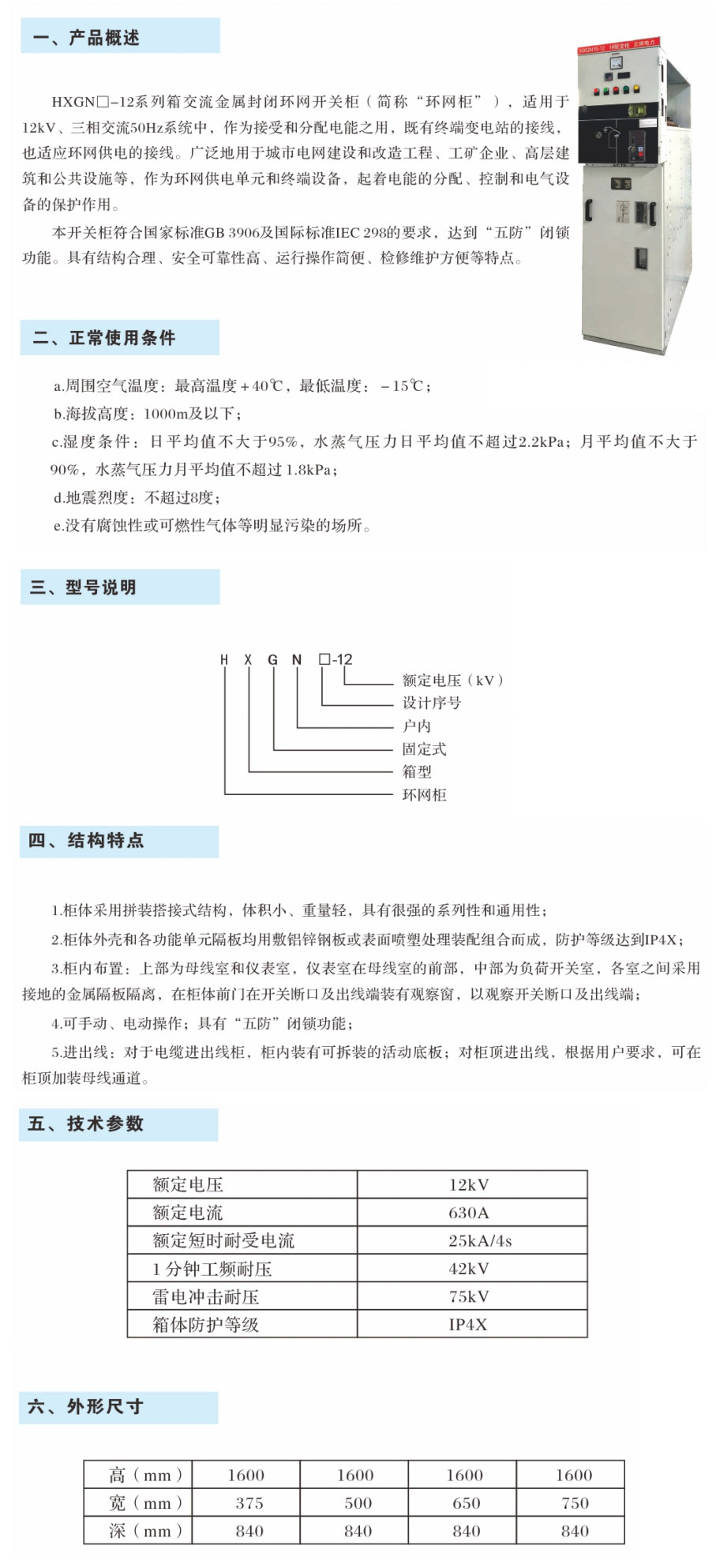 HXGN□-12交流金属封闭环网开关柜